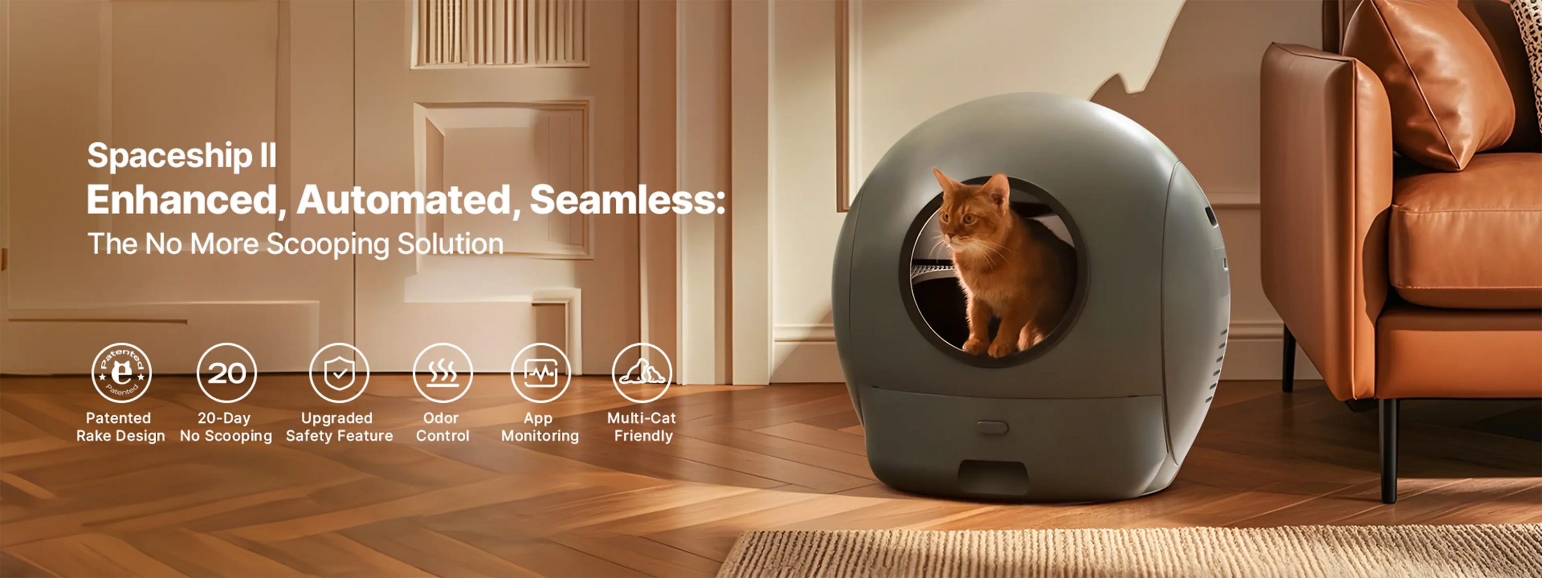 Meet Spaceship II, your ultimate No More Scooping helper! Its automated arm clears clumps after every cat visit, keeping your home fresh and odor-free. Enjoy a holiday season of ease and comfort—let Spaceship II bring peace to your home!
